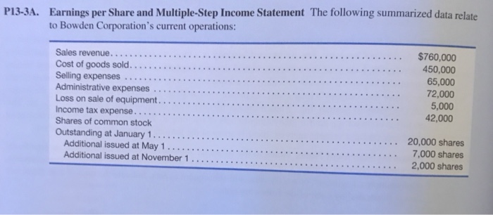 Solved: Prepare A Partial Income Statement Beginning With ... | Chegg.com from d2vlcm61l7u1fs.cloudfront.net Over time, a company's total number of outstanding shares can change significantly, so the total earnings may. Earnings per share (eps) is the monetary value of earnings per outstanding share of common stock for a company. Look at the earnings reports and analyze the statements yourself.