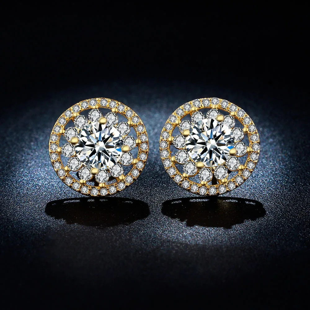 Rose gold plated round halo stud earrings made with swarovski elemenmts. Remember a millimeter (mm) is very small, approximately the width. We have white gold, rose gold, & yellow gold diamond stud earrings. De beers' diamond studs, drop earrings and hoops reveal the precise artistry of our craftspeople.