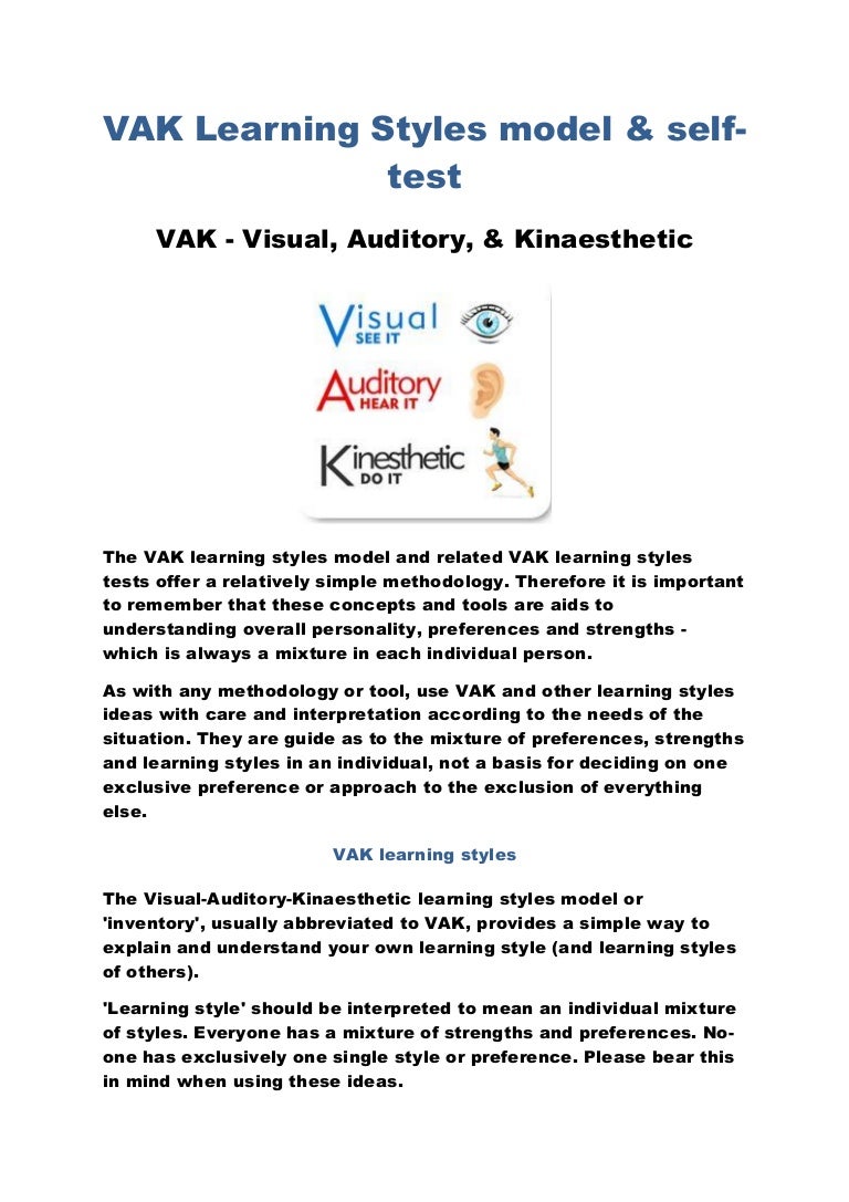 Sample of VAK self-assessment questionnaire | Download Scientific Diagram from www.researchgate.net Choose the answer which best explains your preference and click the box next to it. Someone with an auditory learning style has a preference for the transfer of information through listening: What student doesn't know about learning styles?