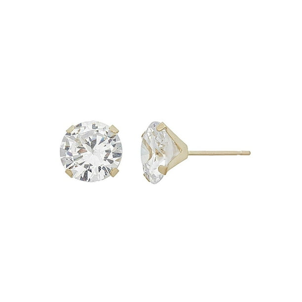 Prong set in 14 karat gold plated metal, each of these earrings is 3/4 carat, and adds just the right amount of sparkle for him.